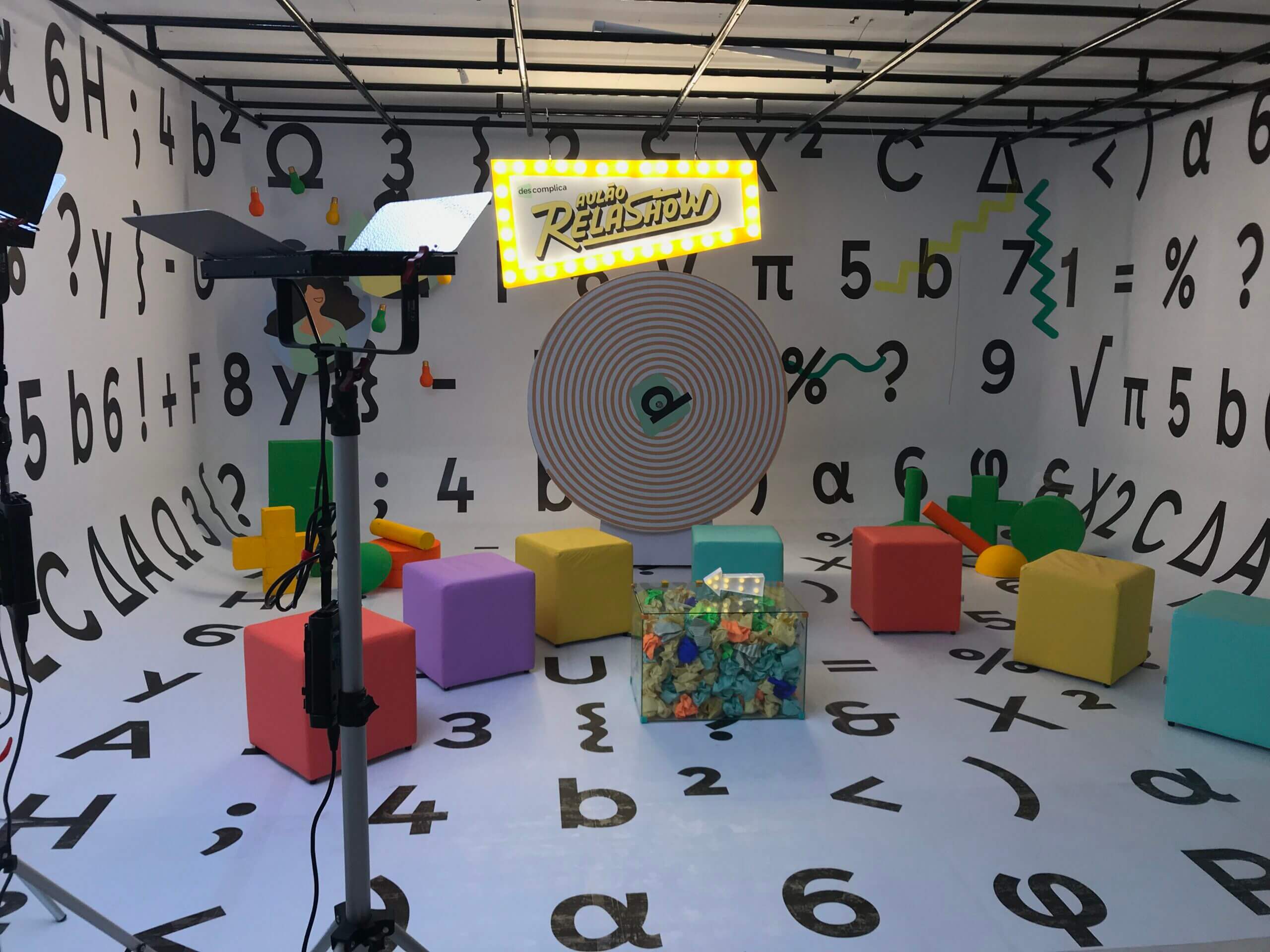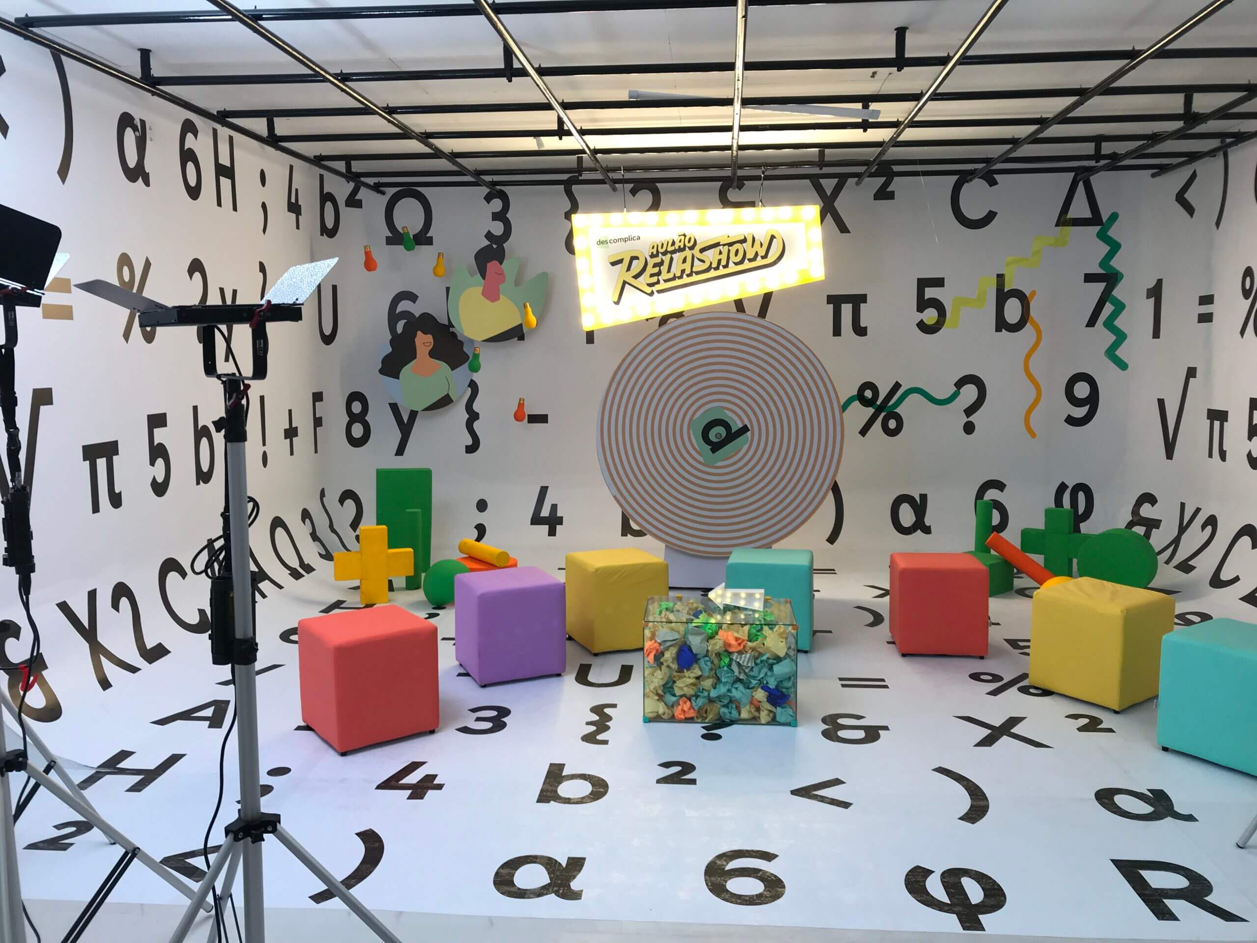 Cenário para a gravação do aulão Relashow para o ENEM, da plataforma online de educação Descomplica.