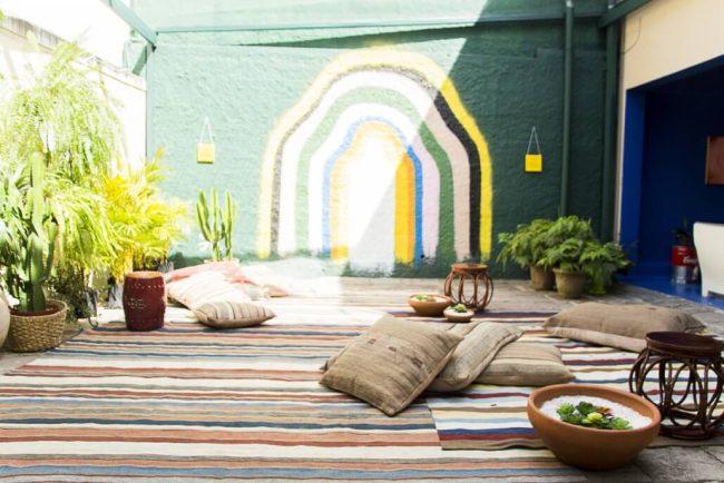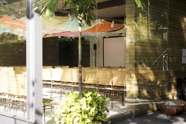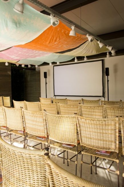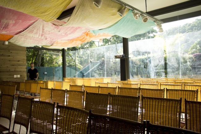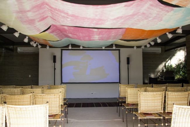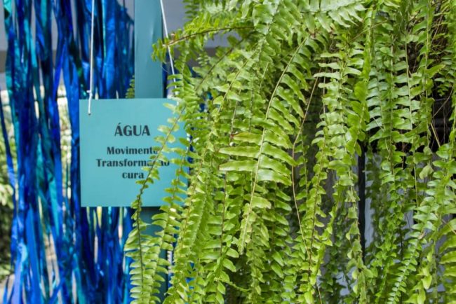 Os quatro elementos instigam os sentidos e surpreendem durante todo o percurso até o workshop. No espaço água, fizemos uma instalação sensorial com projeção de ondas, barulho e cheiro do mar.