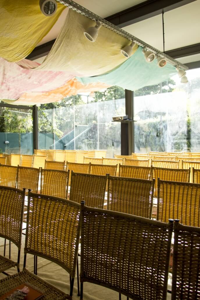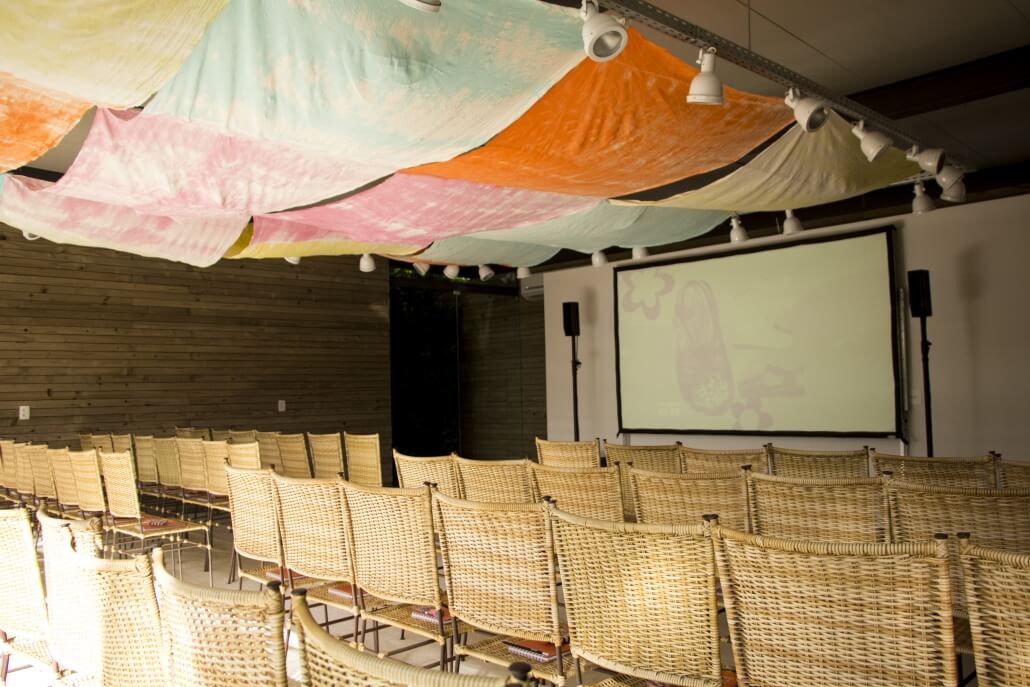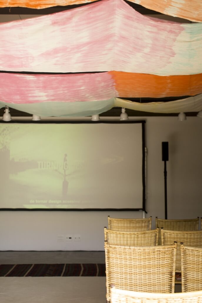 Os quatro elementos instigam os sentidos e surpreendem durante todo o percurso até o workshop. No espaço água, fizemos uma instalação sensorial com projeção de ondas, barulho e cheiro do mar.
