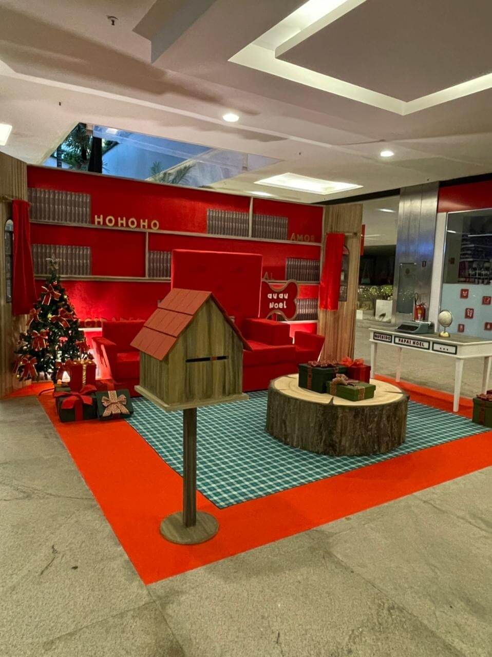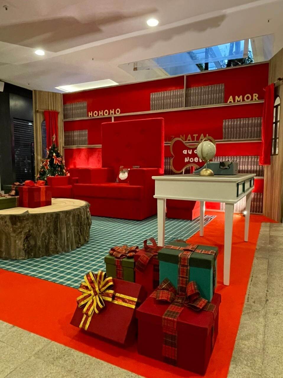 Cenário para fotos com o papai noel no shopping Fashion Mall. A inspiração foi o escritório do papai noel, onde ele lê as cartinhas enviadas pelas crianças.