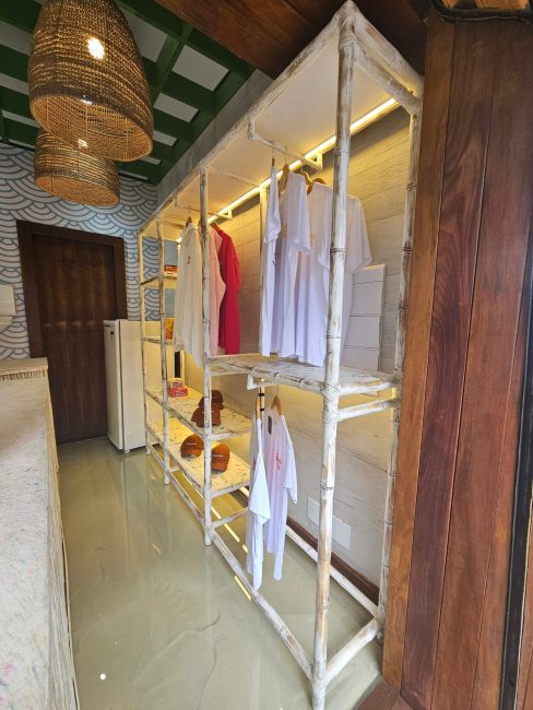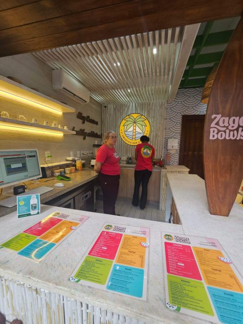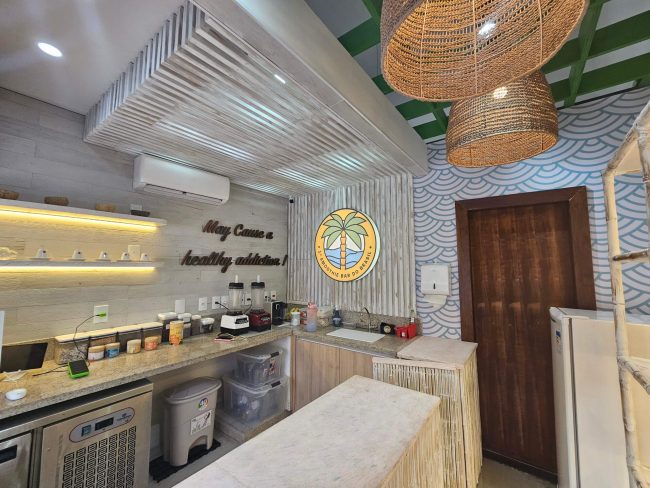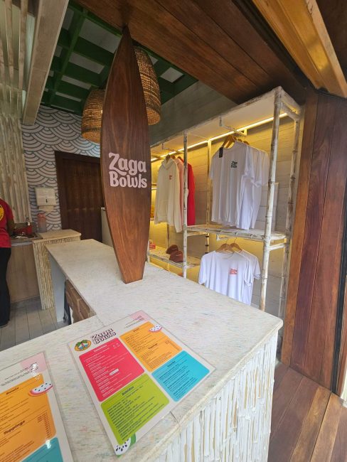 O Zaga Bowls, pioneiro no Brasil como smoothie bar, oferece uma experiência de refeição inspirada no lifestyle da Indonésia, perfeitamente alinhada com o clima brasileiro por ser leve, refrescante e super nutritiva. Nosso projeto trouxe o conceito “da praia para a cidade”, criando uma atmosfera leve e acolhedora dentro do dia a dia agitado da cidade de São Paulo. Utilizamos revestimentos naturais como bambu, piaçava e madeira, e adicionamos um piso de areia, que evoca a sensação única de “pisar na praia”, proporcionando um ambiente que conecta os clientes com a natureza e a tranquilidade da vida praiana. Para abraçar o conceito de sustentabilidade, um atributo importante da marca, incorporamos plástico reciclado nos tampos do balcão e prateleiras da loja, reforçando o compromisso do Zaga Bowls com o meio ambiente.