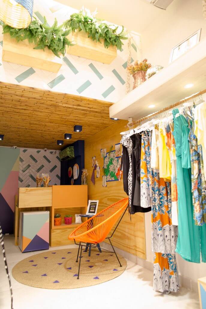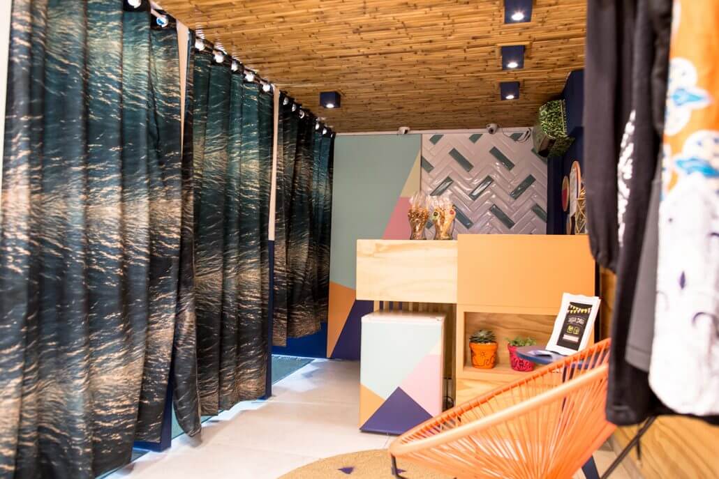 No projeto para loja de roupas Bris Copacabana, desenvolvemos uma ideia a partir da personalidade da marca: carioca de alma, onde seu colorido e leveza foi nossa inspiração. Encontramos nas cores do pôr do sol e do mar a sua paleta de cores ideal. Confira todos os detalhes nas imagens a seguir!