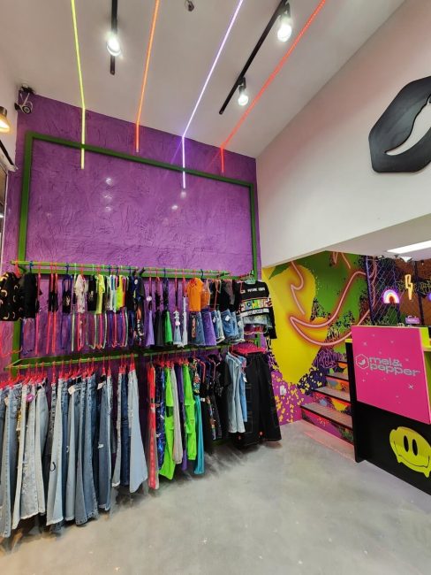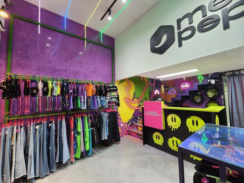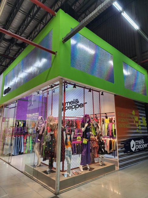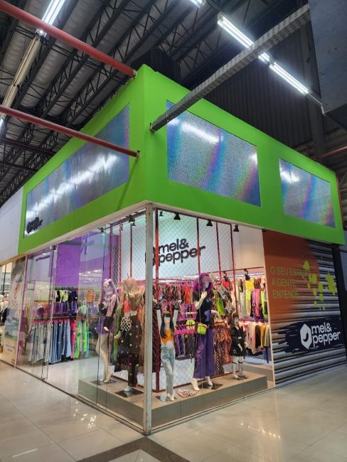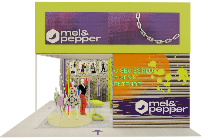 Projeto para a descolada loja Mel & Peper que fica no Pólo da Moda. Trabalhamos espaços instagramáveis e uma imersão na experiência da marca para trocas nas redes sociais. A loja foi segmentada em expositores para o público adulto, jovem e infantil.