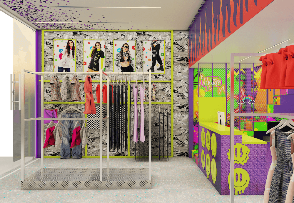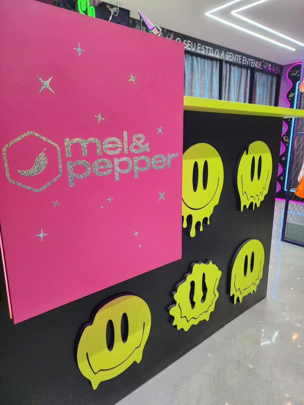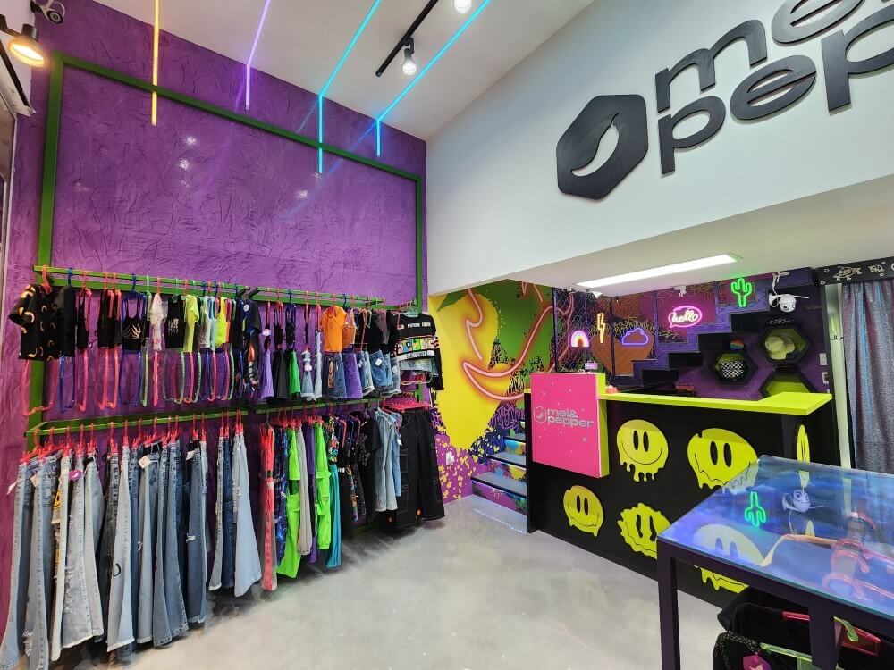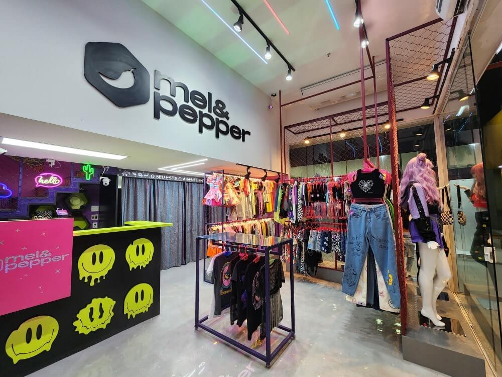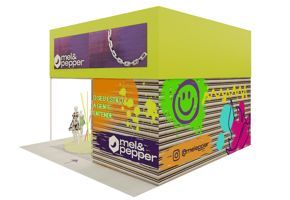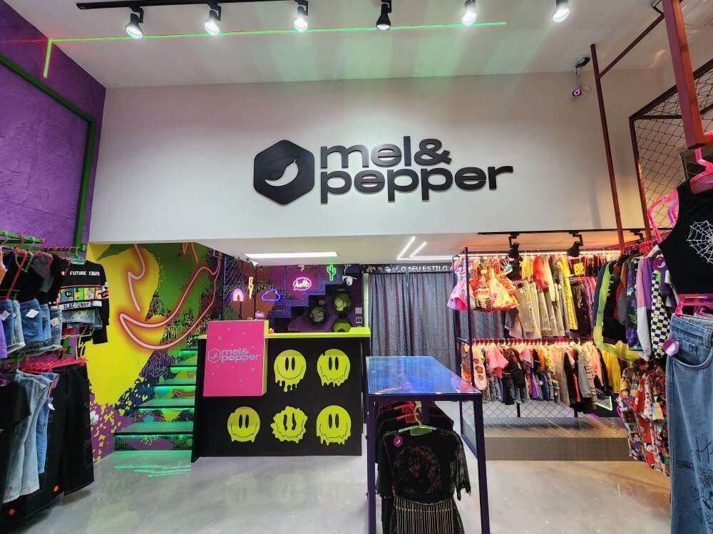 Projeto para a descolada loja Mel & Peper que fica no Pólo da Moda. Trabalhamos espaços instagramáveis e uma imersão na experiência da marca para trocas nas redes sociais. A loja foi segmentada em expositores para o público adulto, jovem e infantil.