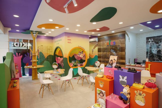 Projeto comercial feito para loja 4 Kid’s no Shopping Downtown. Projetada com base no neuromarketing e comportamento do consumidor, a loja foi projetada com as cores da identidade visual e um storytelling seguindo o mascote da loja, a girafinha! Com expositores em forma de casinha, animais em 3D, totens com texturas para posicionamento estratégico dos produtos, tudo seguindo uma linha orgânica natural da floresta! Com direito a árvore da customização, onde os pequenos podem personalizar seus óculos e uma casinha instagramável para brincar e tirar fotos, com a pintura artística de Wallace Farias, que traz um degradê do pôr do sol.