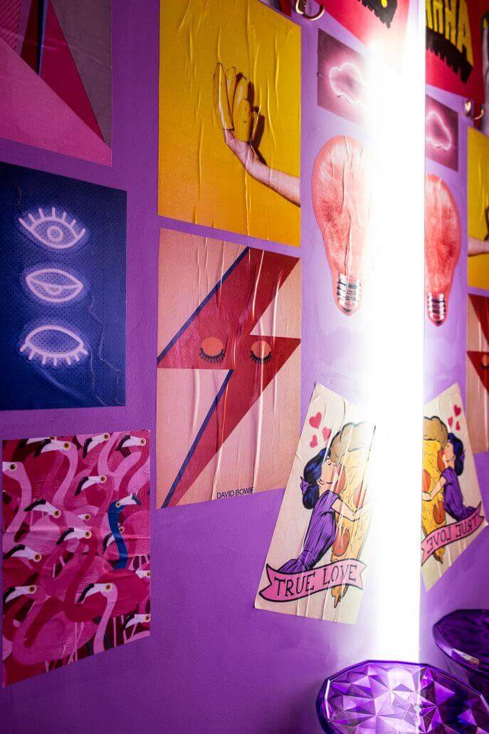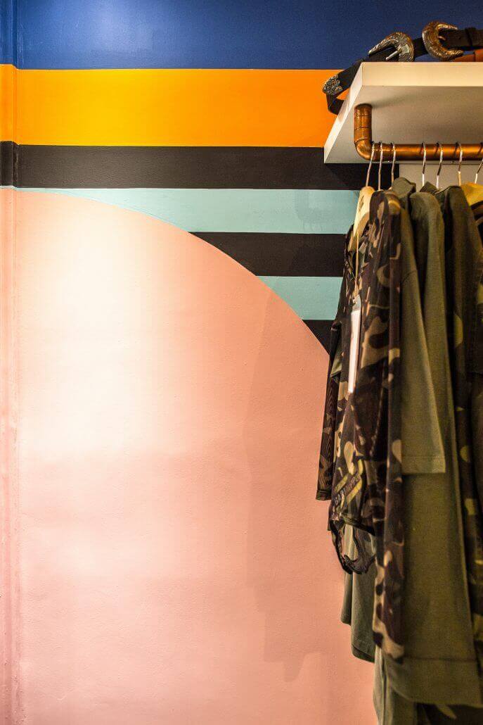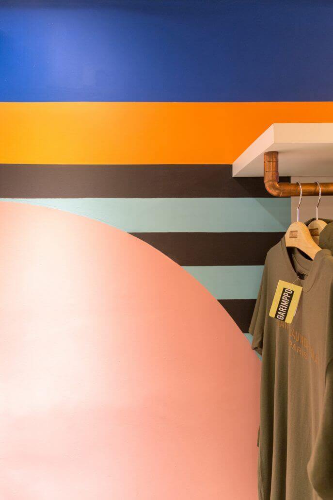 Para o projeto comercial de arquitetura que desenvolvemos para a Garimppo Rio Sul, a Unpack apostou no negrito (cores fortes) e no contraste para um visual ousado e com impacto. Usamos a própria estrutura do espaço para criar o blocado e trabalhamos com a diagonalização dos elementos do projeto.
