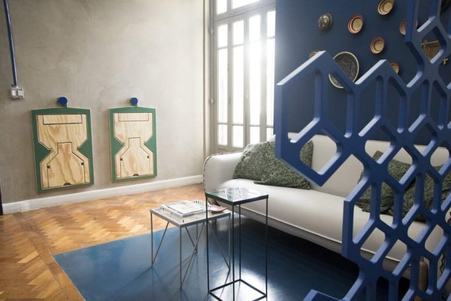 Para este Projeto de Sala Comercial solicitado pelo cliente Instituto Dialog, uma empresa de sustentabilidade empresarial, a equipe da Unpack Design fez uma pesquisa para incorporar a utilização de diversos materiais reciclados e de reuso do sistema B. No projeto, itens como garrafa pet, couro de pirarucu, placas de açaí, corda naval e folha de bananeira foram todos integrados e implementados com harmonia visando o contraste do cimento queimado. Confira nas imagens a seguir mais sobre este Projeto com pegada sustentável.