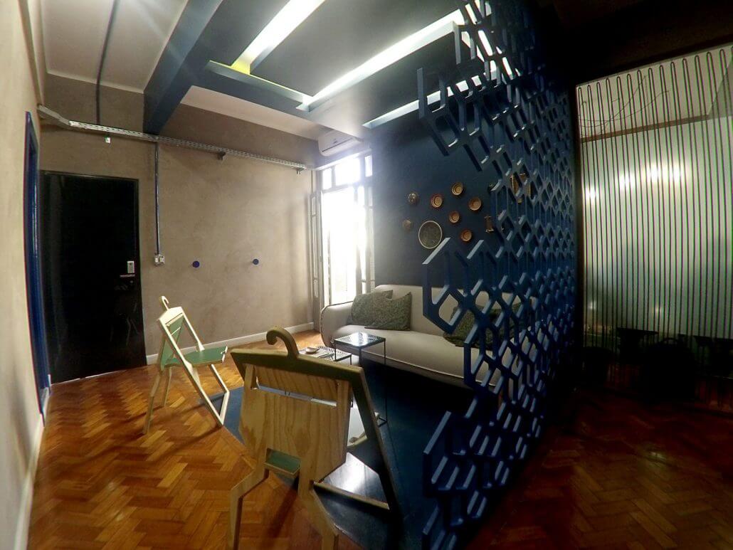 Para este Projeto de Sala Comercial solicitado pelo cliente Instituto Dialog, uma empresa de sustentabilidade empresarial, a equipe da Unpack Design fez uma pesquisa para incorporar a utilização de diversos materiais reciclados e de reuso do sistema B. No projeto, itens como garrafa pet, couro de pirarucu, placas de açaí, corda naval e folha de bananeira foram todos integrados e implementados com harmonia visando o contraste do cimento queimado. Confira nas imagens a seguir mais sobre este Projeto com pegada sustentável.