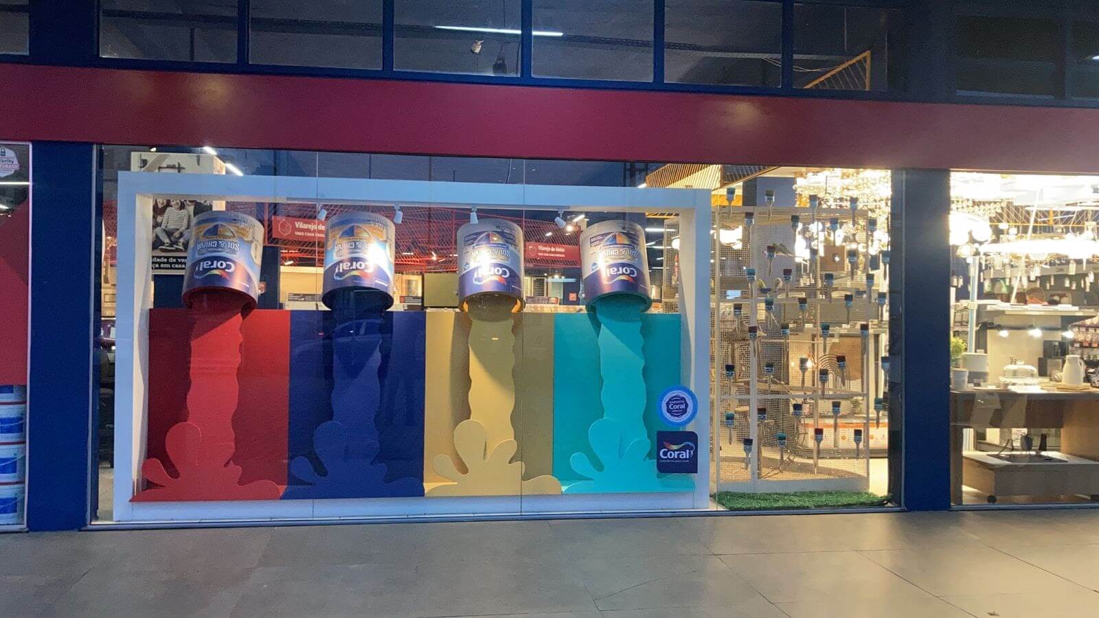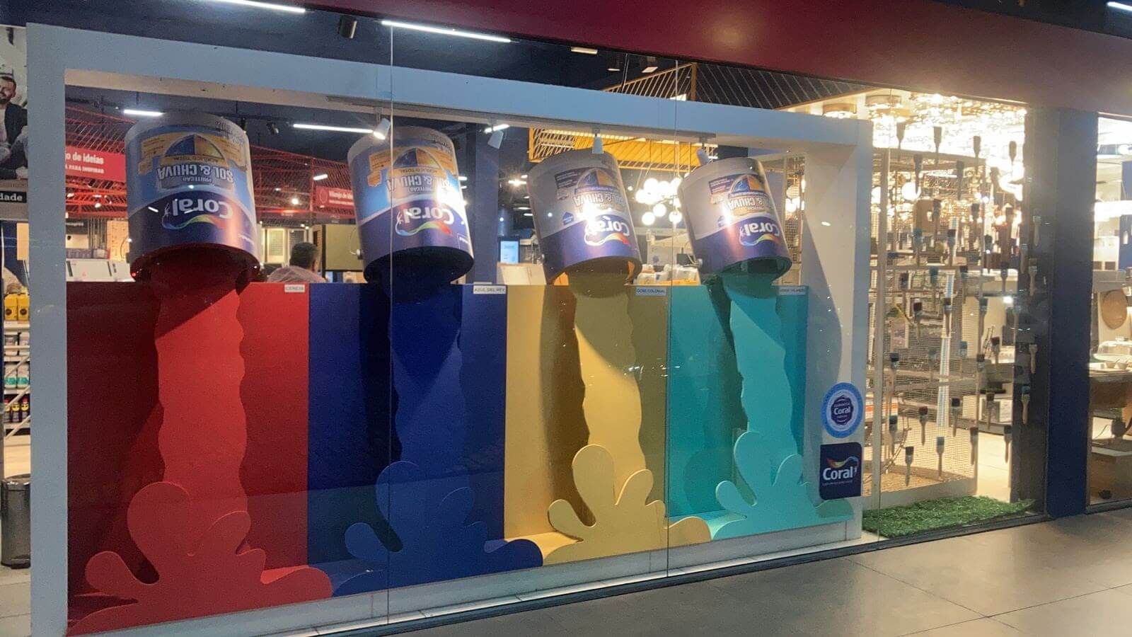 Projeto de Vitrine realizados com o objetivo de marketing de fomentar as vendas da linha Sol & Chuva na região dos Lagos, onde o mercado de tintas externas tem muita saída.