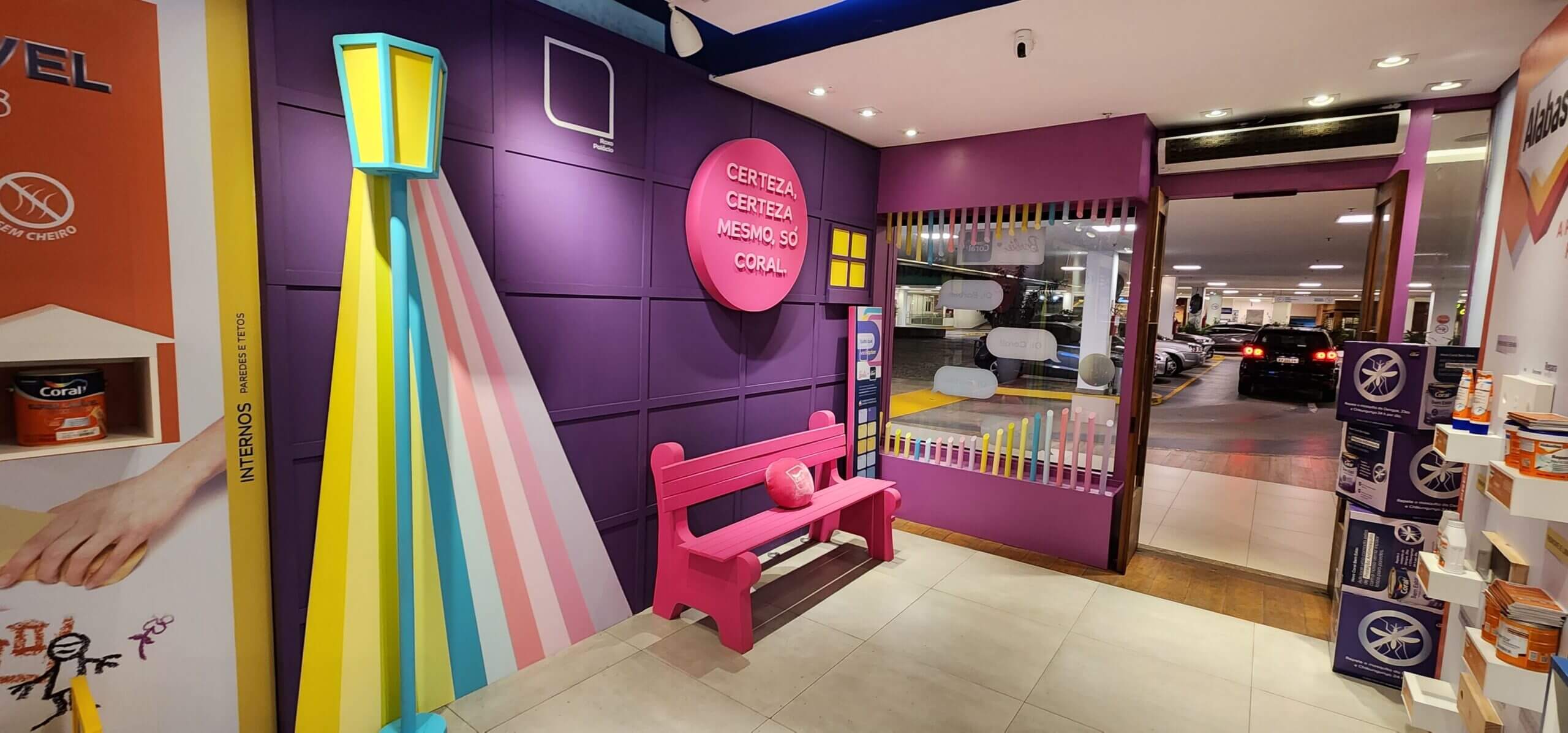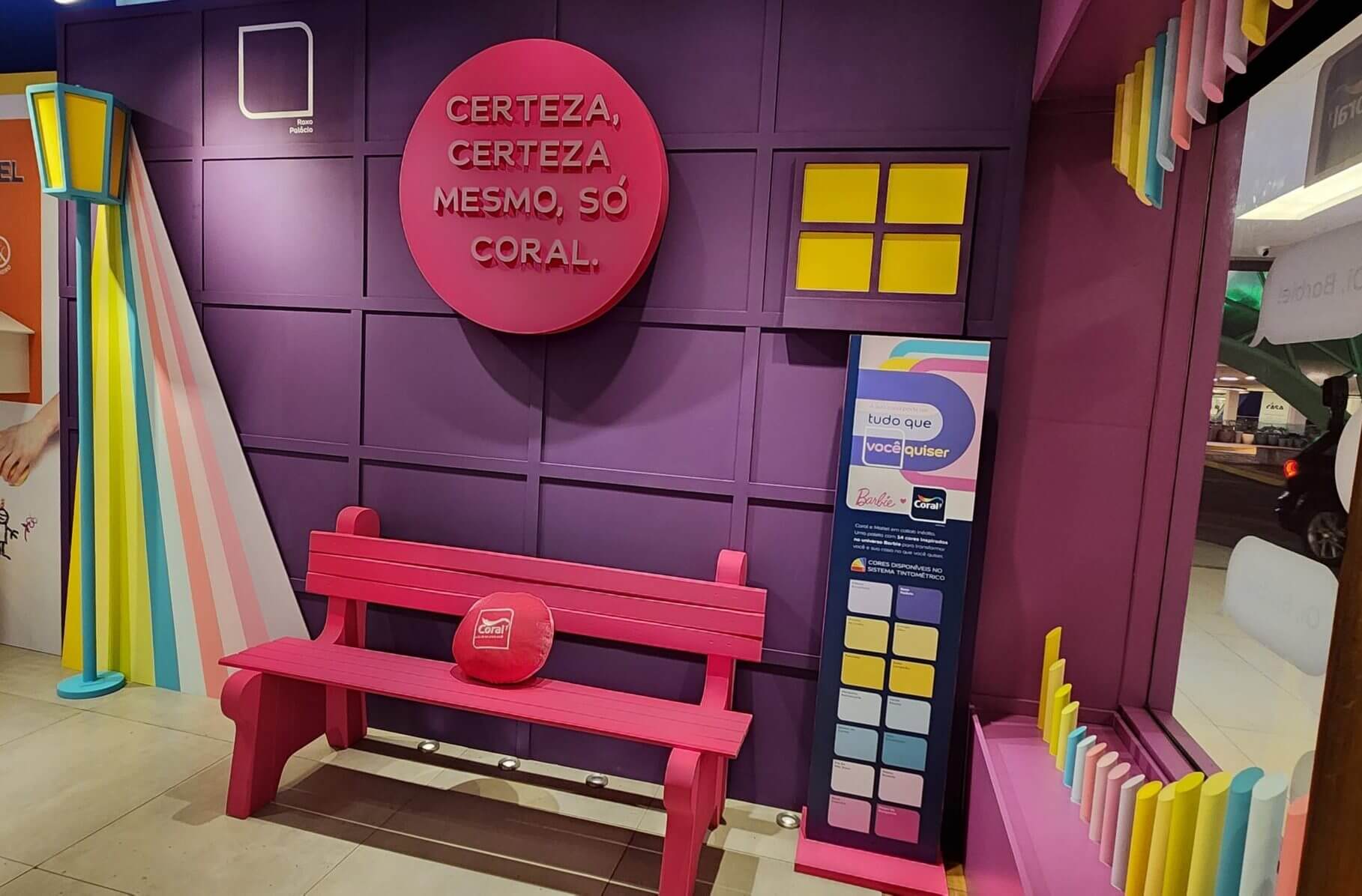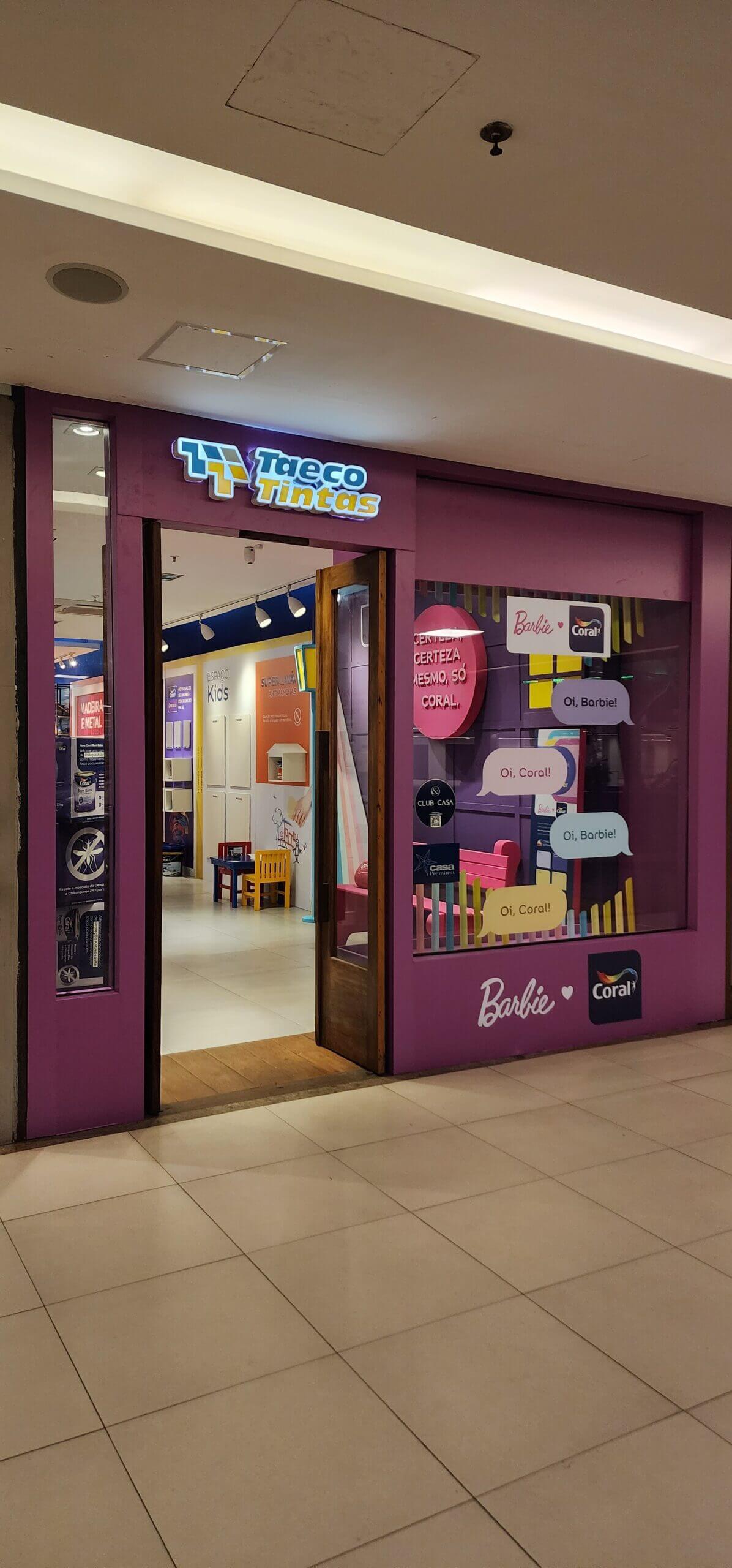 Projetos de vitrine para Coral realizados com o objetivo de marketing de fomentar a linha criada de cores para coleção Barbie em parceria Coral e Mattel.