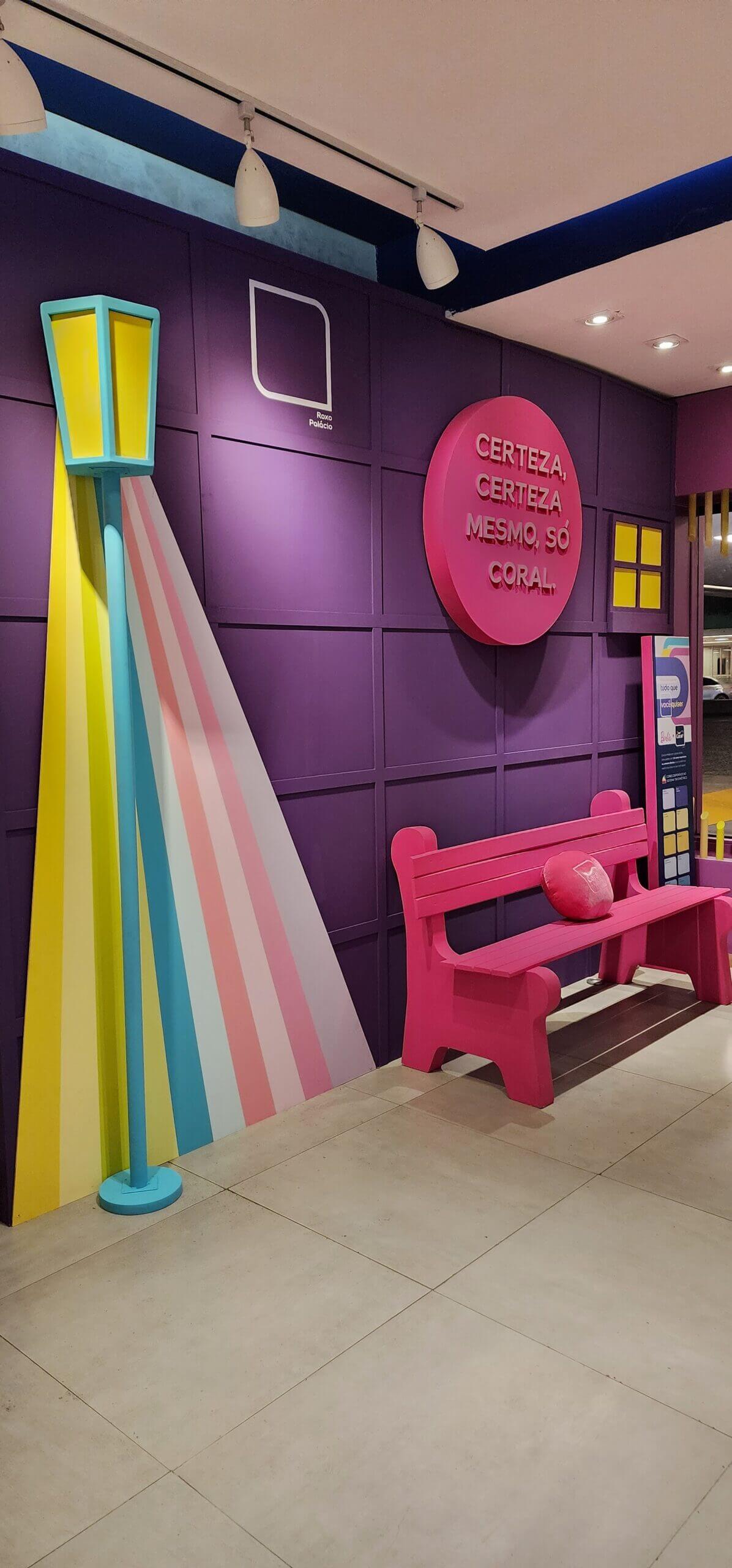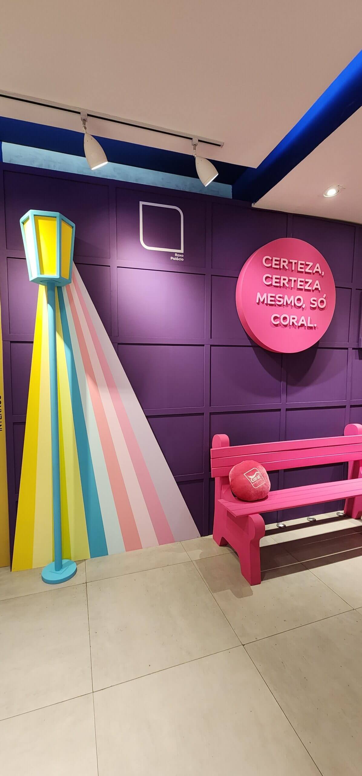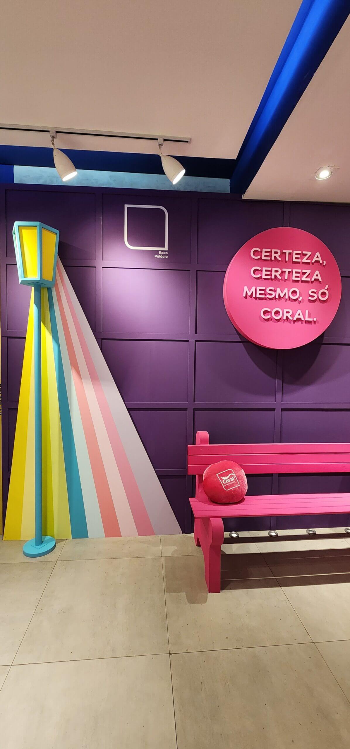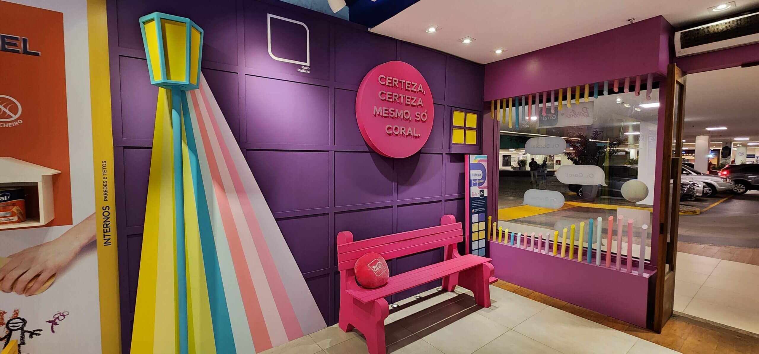 Projetos de vitrine para Coral realizados com o objetivo de marketing de fomentar a linha criada de cores para coleção Barbie em parceria Coral e Mattel.