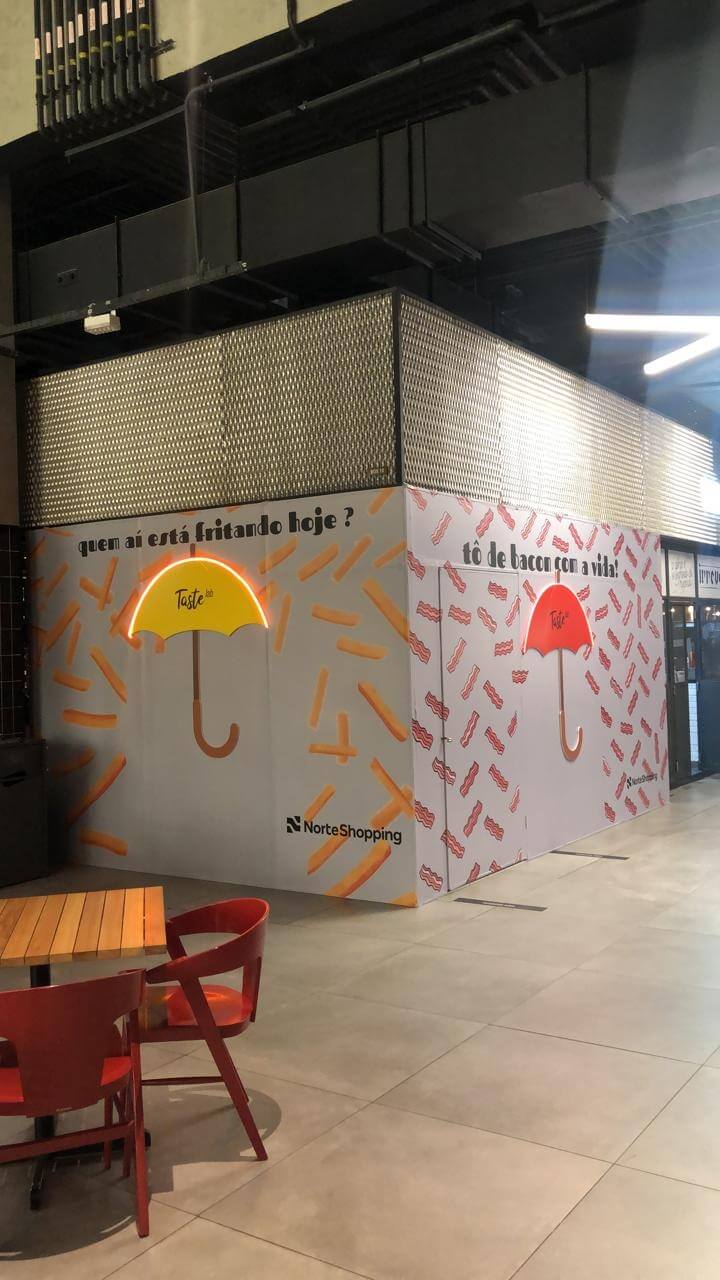 Desenvolvemos tapumes interativos e instagramáveis no Norte Shopping para o espaço gourmet Taste Lab.